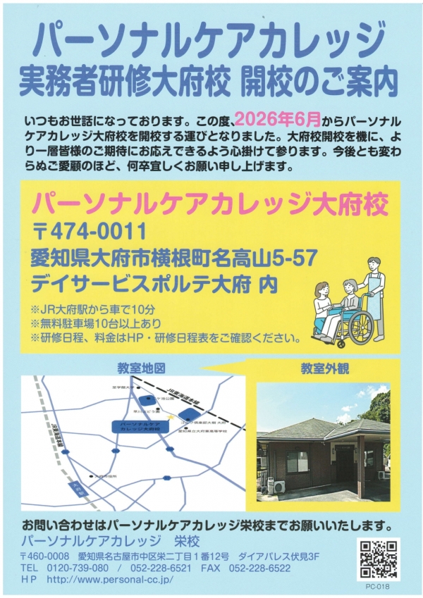 当校では2026年6月より実務者研修大府校を開校することとなりました。
