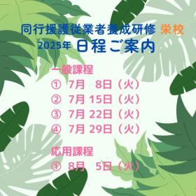 7月・8月開講の同行援護従業者養成研修は絶賛募集中です。